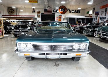 Favazzo Motors is excited to bring you this 1966 Impala convertible. This beauty comes with a monster 427 cid engine paired with a 400 Turbo Hydramatic transmission. Only a handful of 427 Impalas were made in 1966 and clearly this Impala was loved and pampered it's entire life.  The interior is a beautiful golden color that looks great with the turquoise exterior. This car runs as good as it looks with a ton of acceleration and power!
